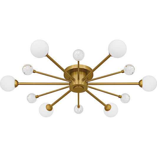 Combe 6Lt Semi-Flush, Gold/Opal Etched, Crystal/Bubble