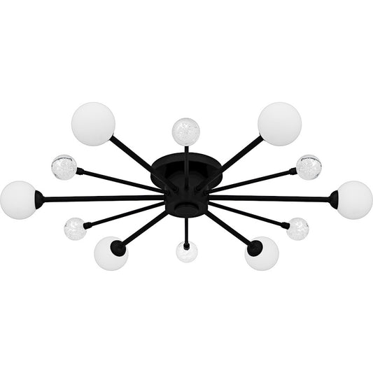 Combe 6Lt Semi-Flush, Black/Opal Etched, Crystal/Bubble