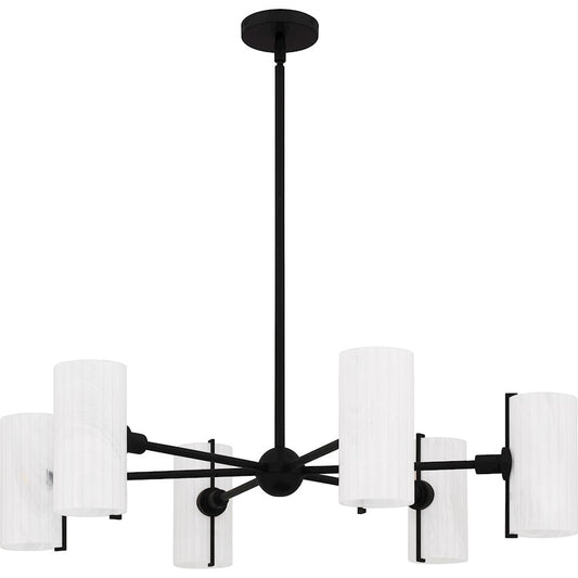 Curran 6Lt Chandelier, Black/Clear Ribbed Swirl