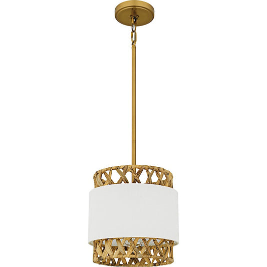 Kate 1Lt Mini Pendant, Gold/White Linen And Rattan