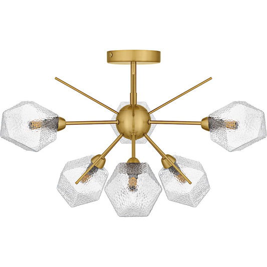 Salvador 6Lt Semi-Flush Mount, Gold/Clear Textured