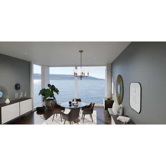 Mallory 5 Light Chandelier, Weathered Brass/White Glass