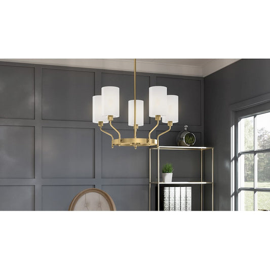 Parkington 5 Light Chandelier, Aged Brass/White