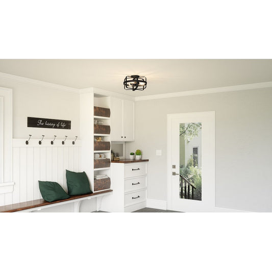 Braden 2 Light Flush Mount, Matte Black/Multicolor Art Glass