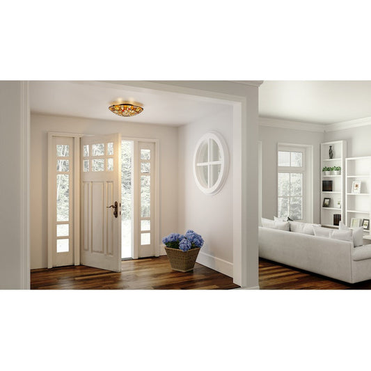 Stinson 2 Light Flush Mount, Black/Multicolor Art Glass
