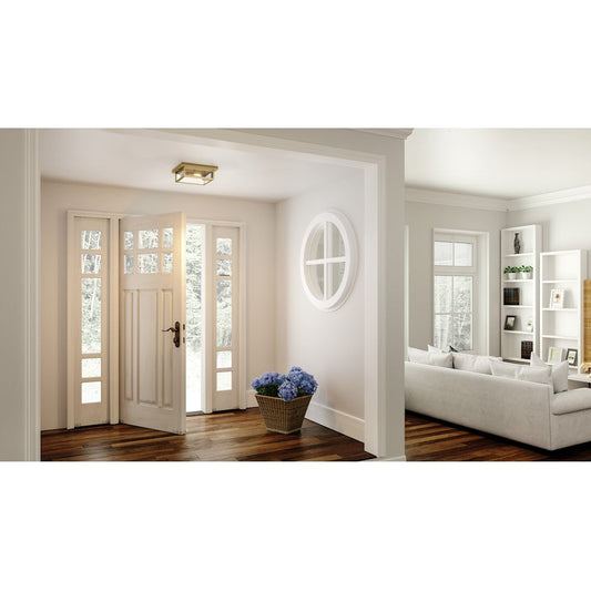 Westover 2 Light Flush Mount, Antique Brass/Clear Seeded