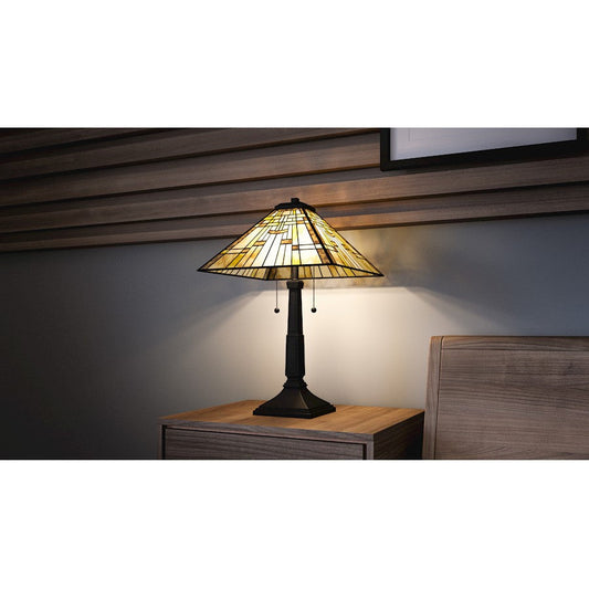 Quinn 2 Light Table Lamp Tiffany, Vintage Bronze