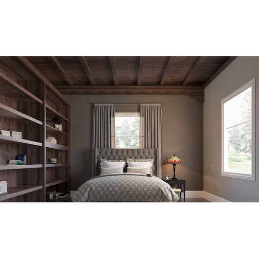 Tiffany 2 Light 25" Table Lamp, Matte Black/Multicolor Art