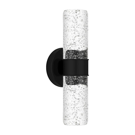 Kaia LED 14" Outdoor Lantern, Black/Clear Bubble Glass