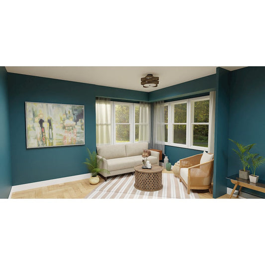 Priya 3 Light Semi-Flush Mount, Matte Black/Rattan Caning