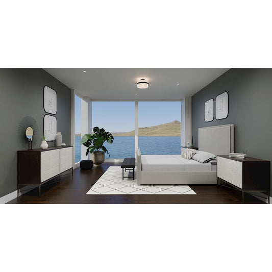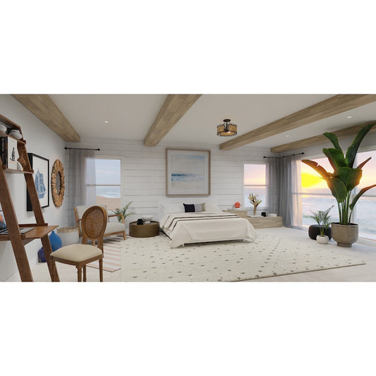 Renzo 2 Light Semi-Flush Mount, Matte Black/Beige Fabric
