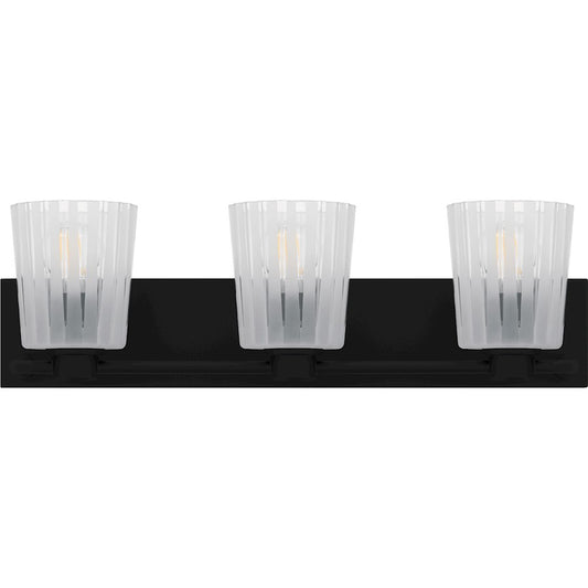 Gray 3Lt Bath Light, Black/Clear Ribbed Sandblasted