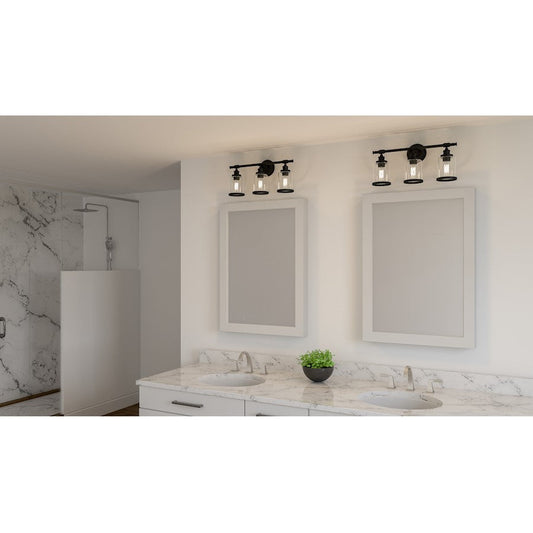 Baltic 3 Light Bath Light, Matte Black/Clear Water