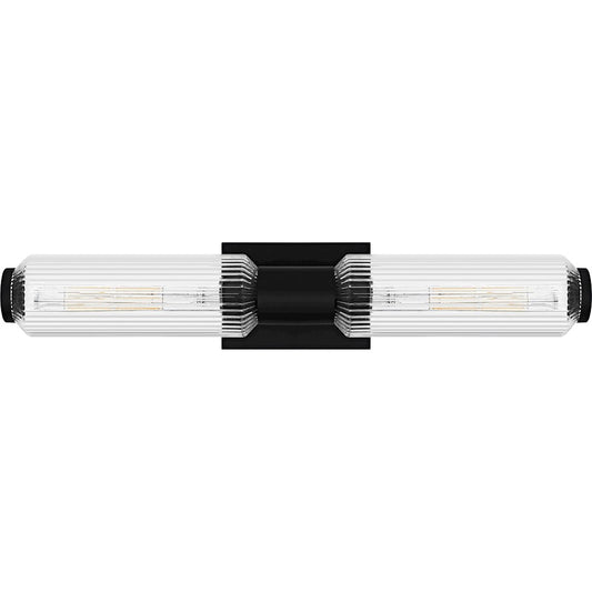 Hawes 2Light Bath Light, Matte Black/Clear Ribbed Glass