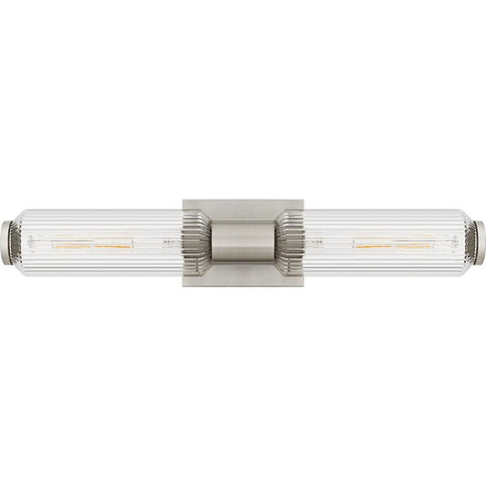 Hawes 2Light Bath Light, Brushed Nickel/Clear Ribbed Glass