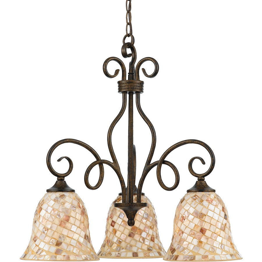 The lovely mosaic design on the glass shades is made from genuine pen shell, bringing the beauty of nature into your home. The playful curls of the metal body add a whimsical element to the overall style. Its looks as wonderful in a beach house as it does in a modern loft