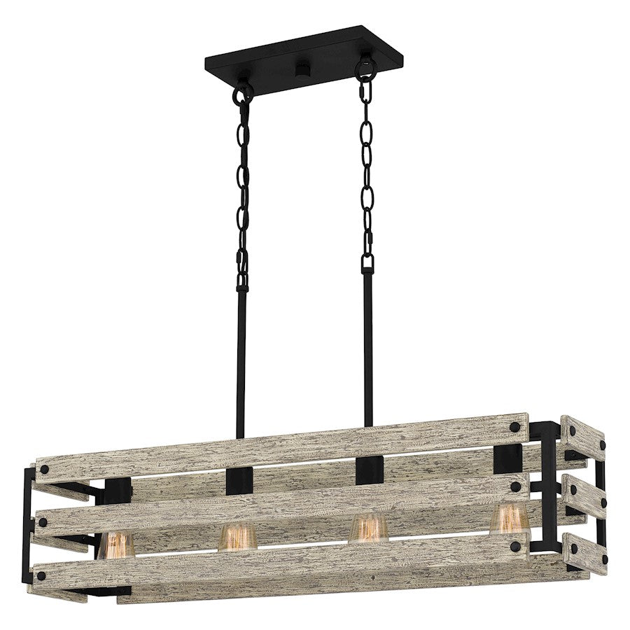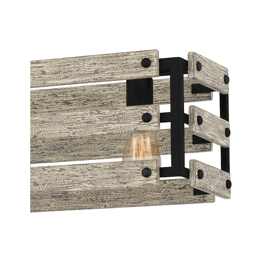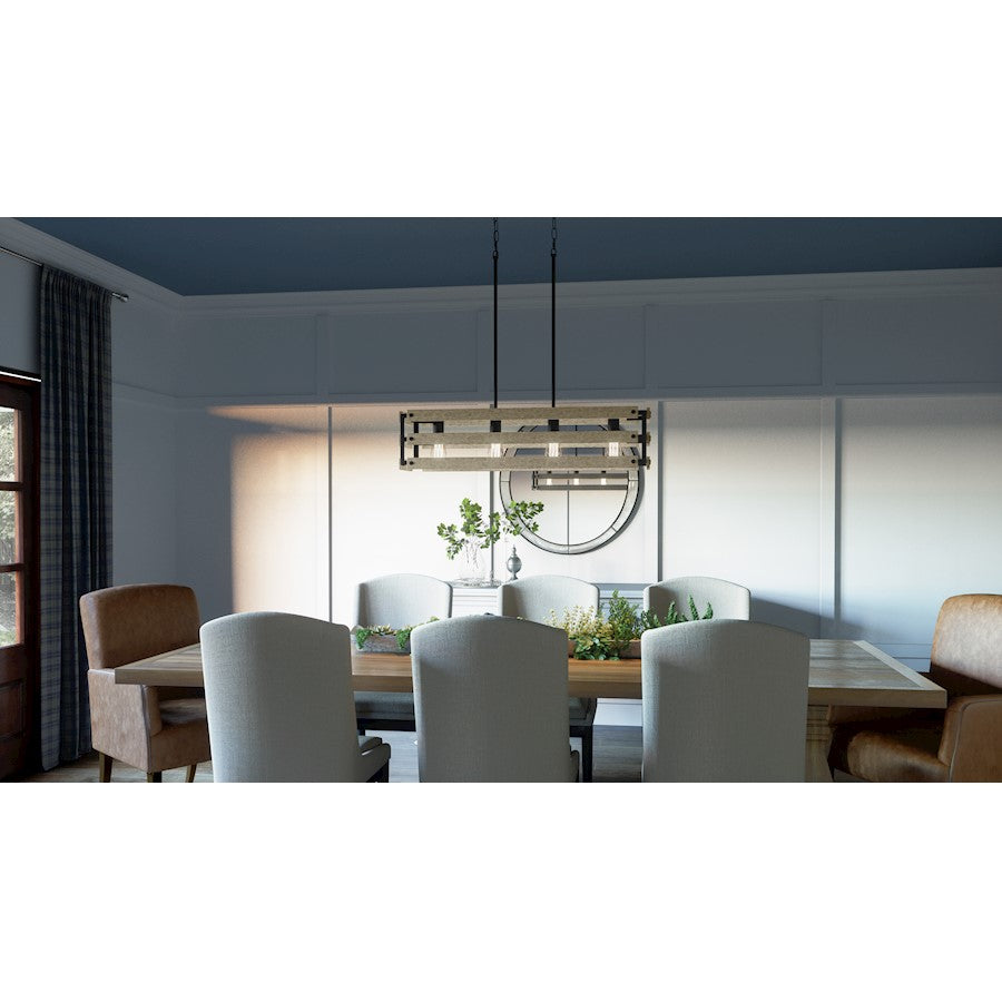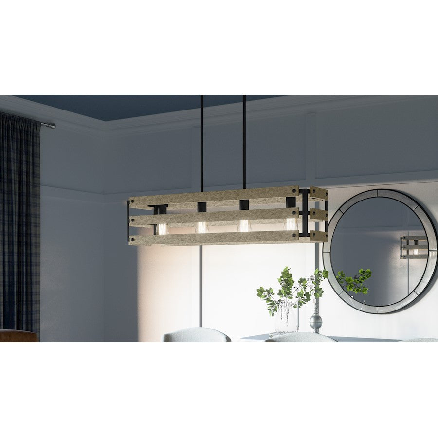 Weathered faux wood and iron elements come together in Ashburn, a handsome flush mount or island light that complements industrial design styles. Whether in a mudroom or casual kitchen or dining space, this style is equal parts inviting and timeworn. Add in vintage style candelabra bulbs (not included) for an extra layer of flair.
