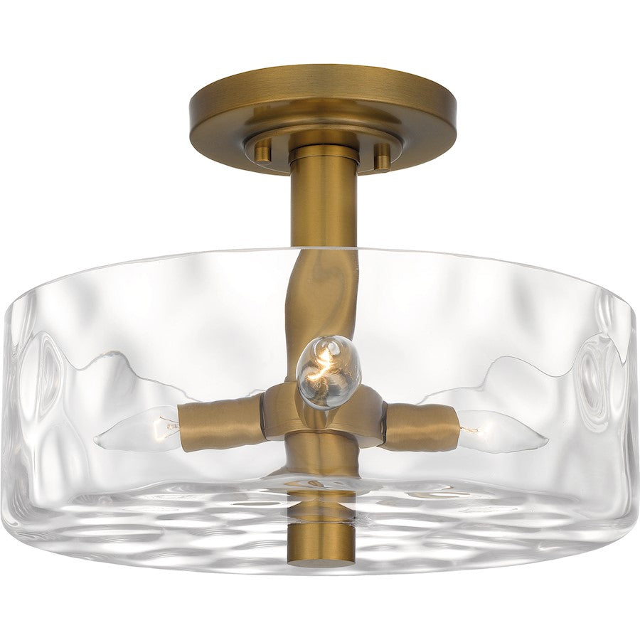 Calpella 3 Light Semi-Flush Mount, Aged Brass/Clear Water