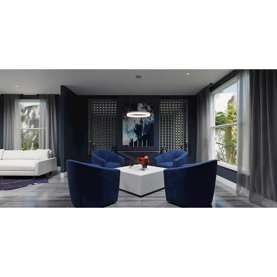 Sleek and striking, the minimalist Cohen series hypnotizes with a halo-like ring of glowing LED light. Choose from a variety of style options from flush mount to chandelier, all featuring an etched acrylic shade and your choice of either brushed nickel or oil rubbed bronze finish. The chandelier style is suspended from steel cord, reinforcing a modern aesthetic.