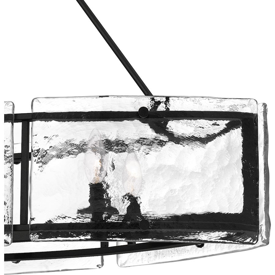 Panels of textured glass pair with an earth black finish to create the Fortress series. Offering simple yet striking design, Fortress is available as a mini pendant, semi-flush mount, pendant, or island light. As a fan light, this design comes in both earth black and mottled silver finishes.