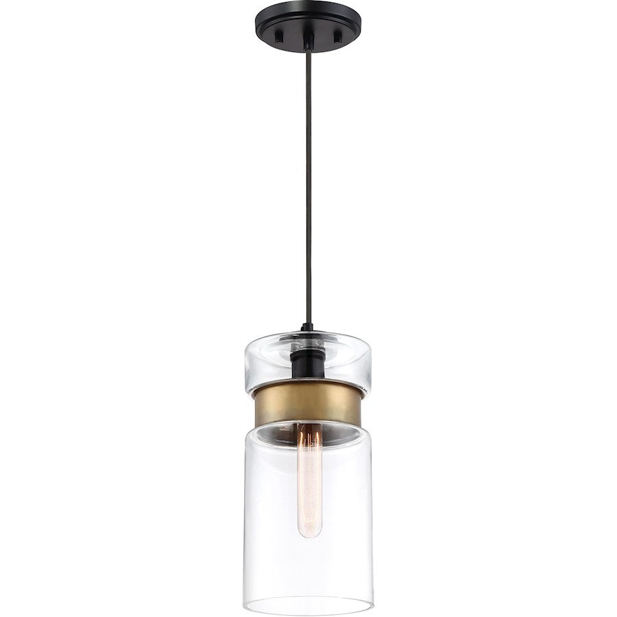 With a slim silhouette and minimal details the Gathering Mini Pendant wows in all the right places. The clear glass is cylindrical and to add a pop of color it is cinched with a broad band of painted brass. This cable-hung fixture can be adjusted to suit your needs and the matte mystic black finish coordinates with it perfectly.