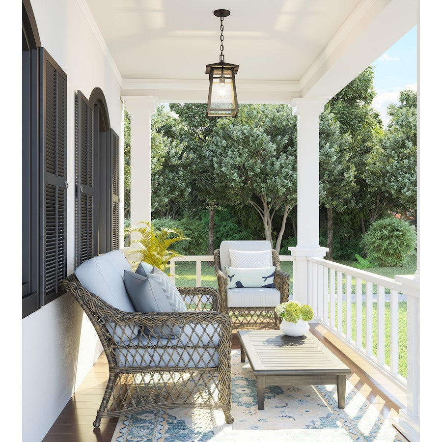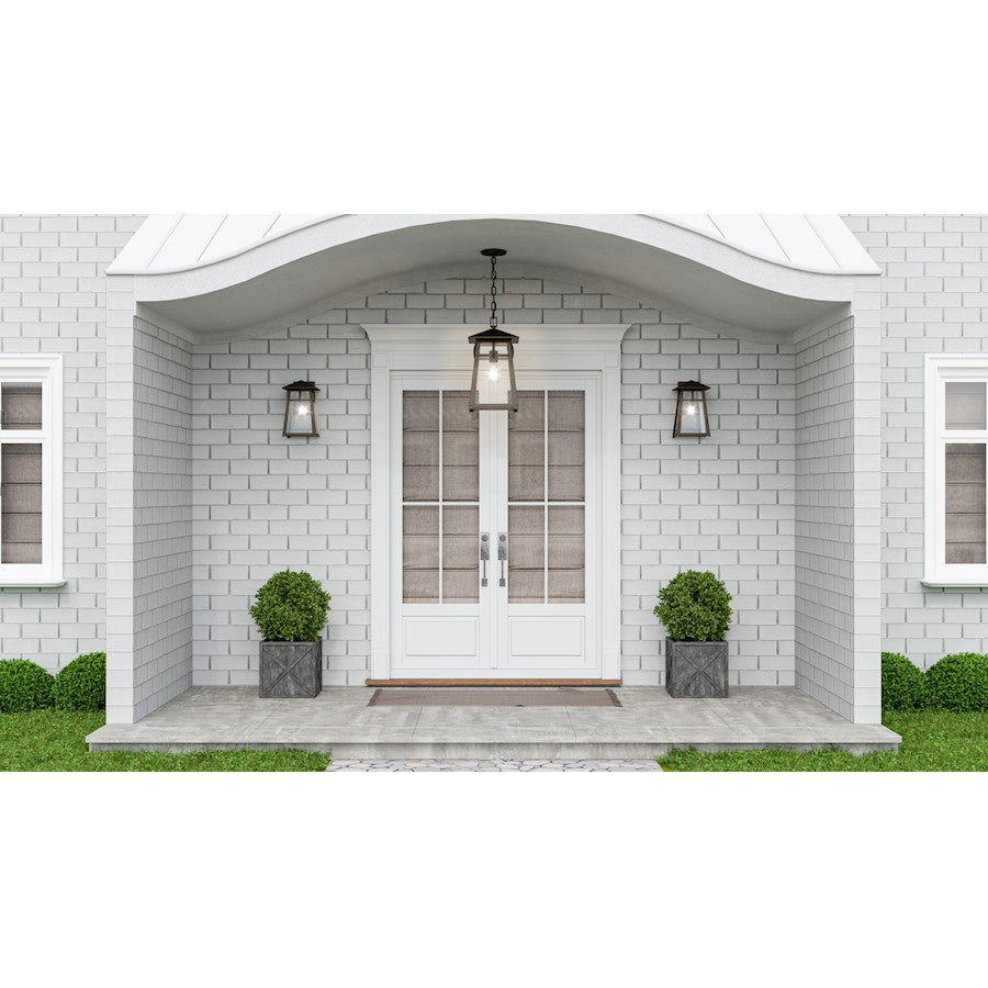 The Merle lantern series is available in a variety of designs. Choose the pendant style for a kitchen, porch, or portico or illuminate landscaping with a post style. In a burnished bronze finish with clear seeded glass panels, this indoor and outdoor lighting option shimmers with natural, handsome beauty.