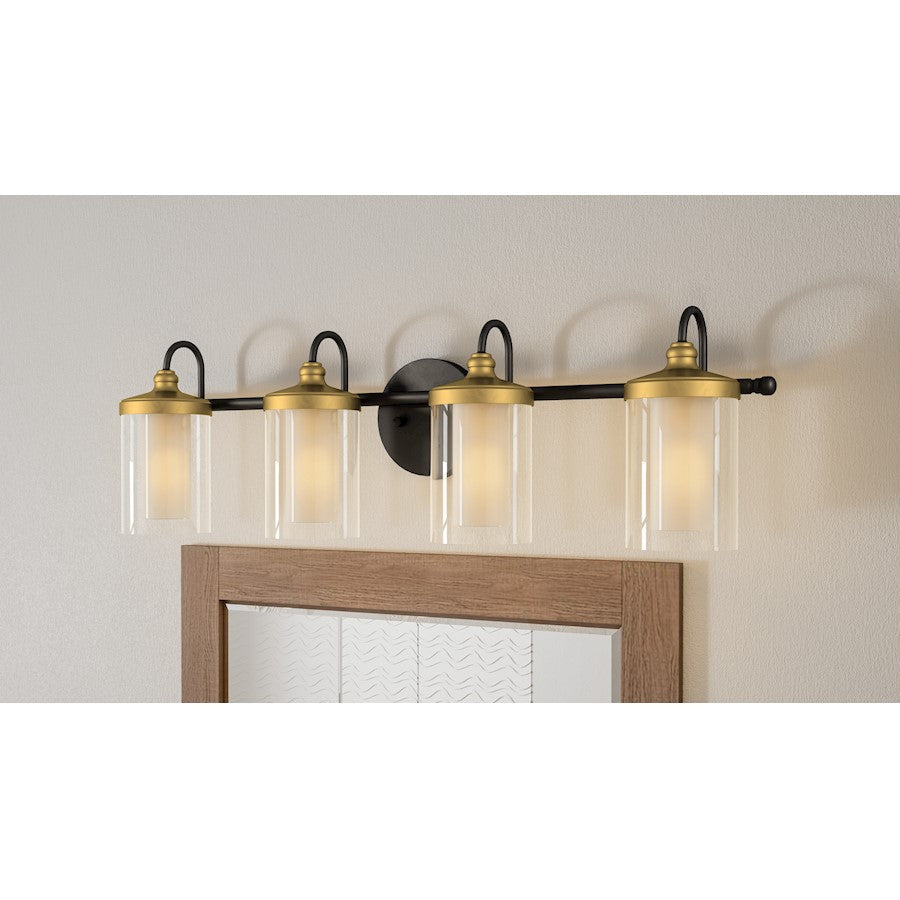 Rowland 4 Light Bath Vanity, Matte Black/Clear