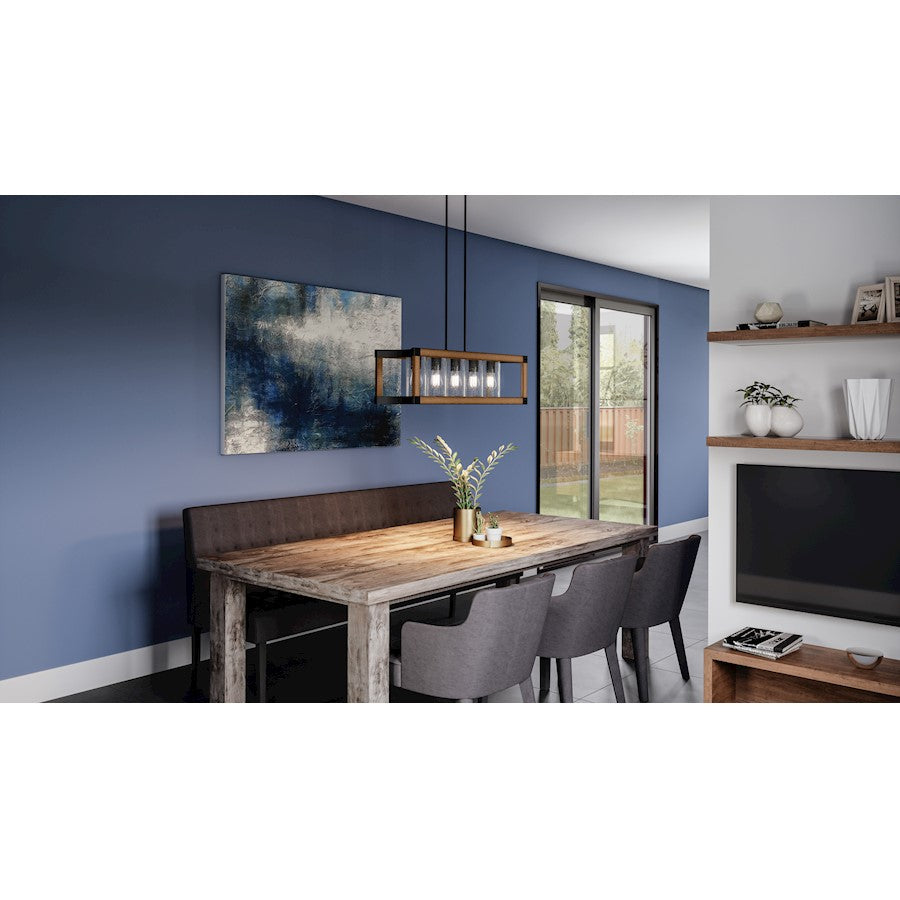 Outdoor spaces can feel as chic as the inside with the Rylan light, available as an island light or pendant. Pairing clear seeded glass with a matte black finish and wood accents, this piece is rustic yet polished. Complete the look by adding in clear candelabra bulbs for a warm, vintage glow.