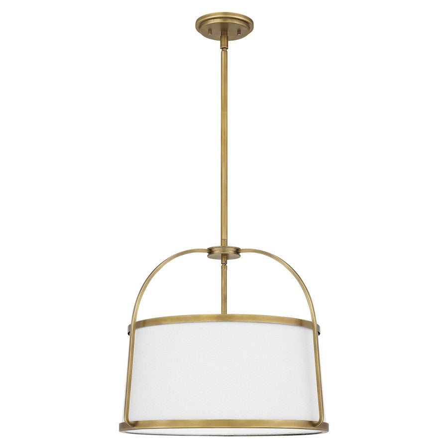 York 4 Light Pendant, Weathered Brass/Light Beige